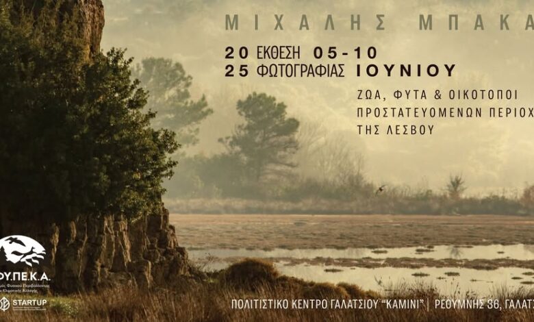 Φωτογραφική έκθεση του περιβαλλοντολόγου Μιχάλη Μπάκα, με θέμα «Ζώα, φυτά και οικοτόποι των προστατευόμενων Περιοχών της Λέσβου» θα πραγματοποιηθεί στο πολιτιστικό κέντρο του Δήμου Γαλατσίου «Καμίνι» (Χρήστου Καψάλη 36 και Ρεθύμνης) από τις 5-10 Ιουνίου, με αφορμή τον εορτασμό της Παγκόσμιας Ημέρας Περιβάλλοντος.