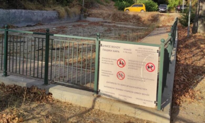 Έμεινε μόνο η ταμπέλα από παιδική χαρά Ανακάσιας που καταστράφηκε – ONLARISSA.GR Νέα Ειδήσεις Λάρισα