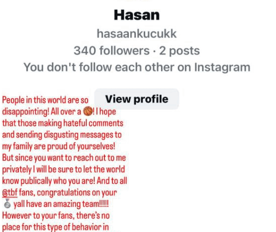 Οι εντάσεις μεταξύ Ελλήνων και Τούρκων φιλάθλων δεν έχουν κοπάσει μετά την ολοκλήρωση του Eurobasket και την κατάκτηση του χάλκινου μεταλλίου από την Εθνική Ελλάδας. Αυτή τη φορά, στο επίκεντρο της αντιπαράθεσης βρέθηκε η Μαράια Αντετοκούνμπο, σύζυγος του Γιάννη Αντετοκούνμπο, η οποία δέχτηκε απειλές.
