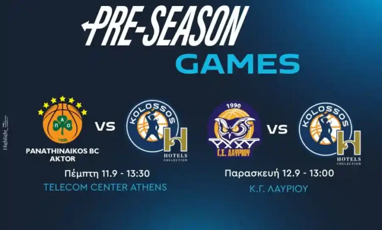 Ο Κολοσσός H Hotels Collection θα αντιμετωπίσει τον Παναθηναϊκό AKTOR την Πέμπτη 11 Σεπτεμβρίου στις 13:30 στο Telecom Center Athens και το Λαύριο την Παρασκευή 12 Σεπτεμβρίου, στην 13:00 στο ΚΓ Λαυρίου.