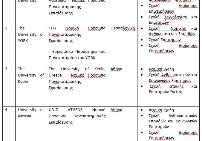 Ανακοινώθηκαν σήμερα 29/8, τα 4 μη κρατικά πανεπιστήμια που πήραν άδεια και θα λειτουργήσουν από φέτος.