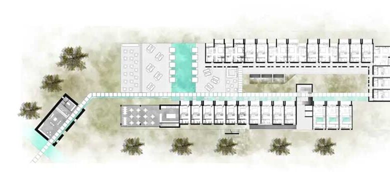 Όσον αφορά στους Ιδιωτικούς Χώρους των Δωματίων συνολικής δυναμικότητας 100 κλινών του Καταλύματος, σε επίπεδο ισογείου σε γραμμική διάταξη χωροθετούνται τριάντα (30) δωμάτια που προβλέπονται σύμφωνα με την αρχιτεκτονική μελέτη, τα οποία περιλαμβάνουν είκοσι (20) Junior Suites των δύο κλινών, πέντε (5) Master Suites των τριών κλινών, δύο (2) Comfort Suites των τριών κλινών και τρεις (3) Superior Suites τρίων κλινών οι οποίες ανπτύσσονται σε δύο ορόφους.