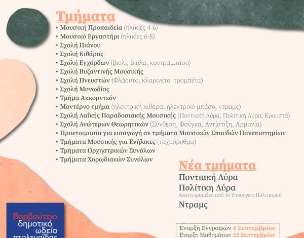 👉 Γίνε κι εσύ μέρος της μεγάλης μουσικής οικογένειας του Βαρβούτειου Δημοτικού Ωδείου Πτολεμαΐδας!