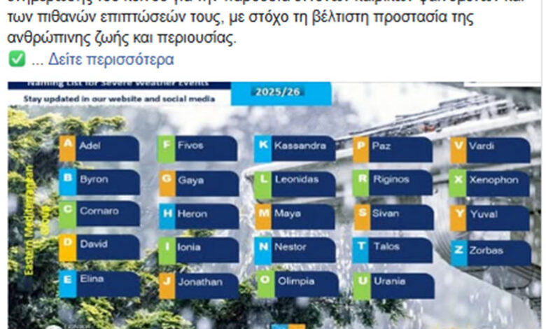 «Βαφτίσια» για… τις κακοκαιρίες του 2025-2026