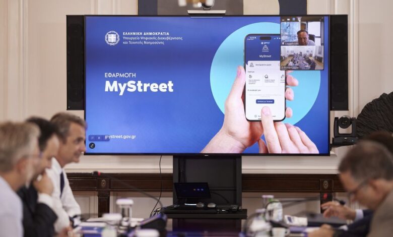 Παρουσιάστηκε σήμερα σε σύσκεψη υπό τον πρωθυπουργό Κυριάκο Μητσοτάκη, στο Μέγαρο Μαξίμου, η εφαρμογή MyStreet, η οποία είναι ένα σύγχρονο ψηφιακό εργαλείο που δίνει τη δυνατότητα στους πολίτες να συμβάλλουν στη διαφύλαξη της νομιμότητας και της διαφάνειας στους δημόσιους χώρους.