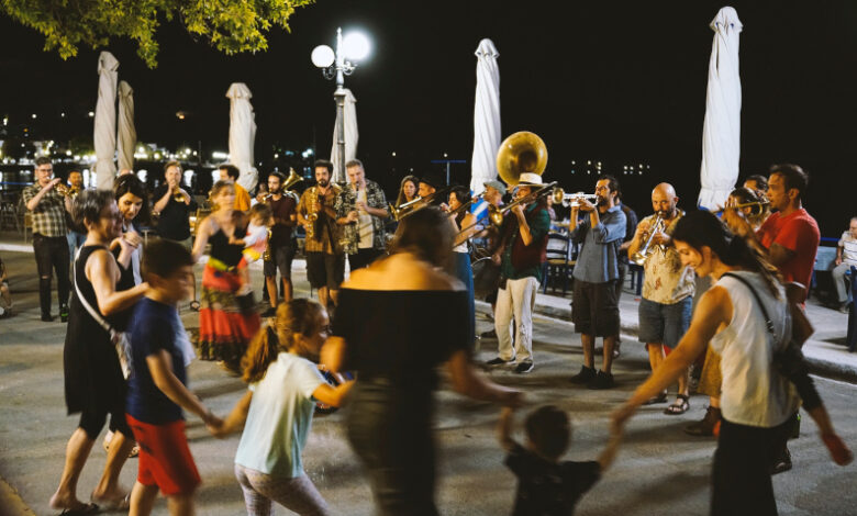 Η ημέρα θα ολοκληρωθεί με την καταξιωμένη ερμηνεύτρια Ελένη Αράπογλου, η οποία θα παρουσιάσει στο Κύμα διασκευές σε γνωστά ελληνικά τραγούδια για το καλοκαίρι, ενώ θα ακολουθήσει πατινάδα από την κορυφαία μπάντα κρουστών και πνευστών Αγία Φανφάρα, σε ένα μοναδικό street party στους δρόμους της Αιδηψού, πριν την προβολή της ταινίας Υπάρχω. Το συγκρότημα θα ερμηνεύσει αγαπημένες παραδοσιακές αλλά και σύγχρονες μελωδίες από την Ελλάδα, τα Βαλκάνια και την ευρύτερη Ανατολική Μεσόγειο.