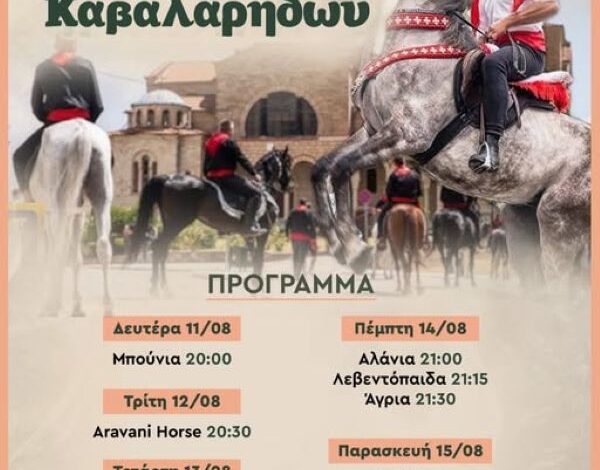 - Παρασκευή 15/8 – Παρέλαση Καβαλάρηδων στις 13:30.