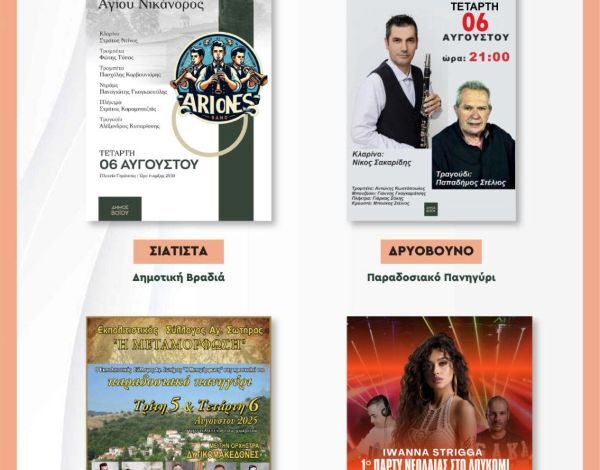 Αναλυτικά οι εκδηλώσεις της Τετάρτης 6 Αυγούστου
