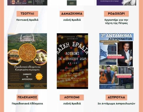 Δήμος Βοΐου: Πολιτιστικό καλοκαίρι 2025 – Εκδηλώσεις Σαββάτου 16 Αυγούστου