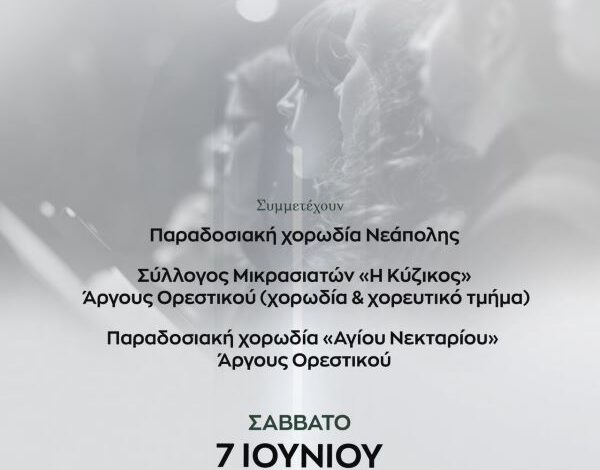 Συμμετέχουν η παραδοσιακή χορωδία Νεάπολης, ο Σύλλογος Μικρασιατών Άργους Ορεστικού «Η Κύζικος» και η παραδοσιακή χορωδία Άργους Ορεστικού «Αγίου Νεκταρίου».
