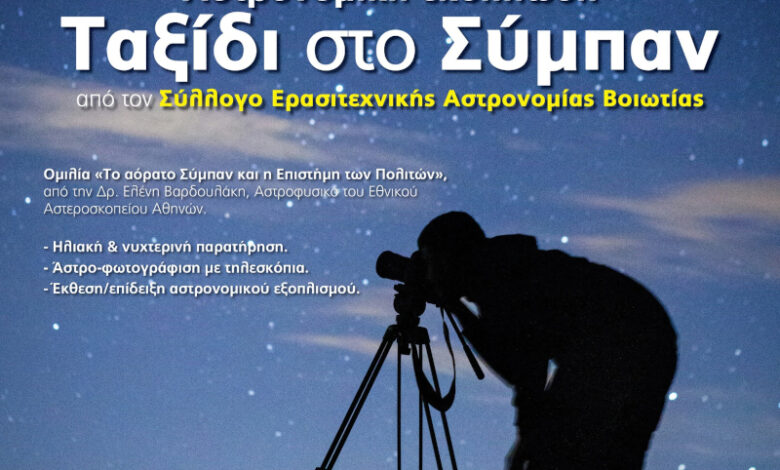 Ο Σύλλογος Ερασιτεχνικής Αστρονομίας Βοιωτίας σας καλεί όλους σε ένα μοναδικό «Ταξίδι στο Σύμπαν», την Παρασκευή 19/9 στη Θήβα (θερινός κινηματογράφος ΣΟΝΙΑ).