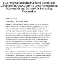 «O FDA εγκρίνει την απαιτούμενη ενημέρωση της προειδοποίησης στην επισήμανση των εμβολίων mRNA COVID-19 σχετικά με τη μυοκαρδίτιδα και την περικαρδίτιδα μετά τον εμβολιασμό