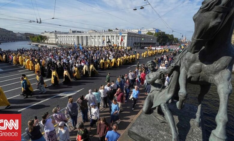 ‘Εκατοντάδες Ρώσοι πολίτες, μεταξύ των οποίων συγγενείς Ρώσων στρατιωτών, συγκεντρώθηκαν σήμερα έξω από την Αγία Πετρούπολη για να παραστούν στα αποκαλυπτήρια ενός μνημείου Ρώσων στρατιωτών που σκοτώθηκαν στη Ουκρανία.