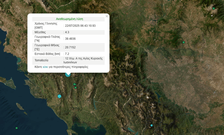Ισχυρός σεισμός αισθητός στα Γιάννενα