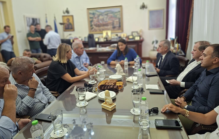 Η κυρία Υπουργός, επικεφαλής κλιμακίου, αποτελούμενου από τον υφυπουργό Εθνικής Άμυνας κ.Αθανάσιο Δαβάκη και τον Γενικό Γραμματέα Αγροτικής Ανάπτυξης και Τροφίμων κ.Σπύρο Πρωτοψάλτη, είχε συνάντηση στο γραφείο του Αντιπεριφερειάρχη με βουλευτές και δημάρχους της Π.Ε. Σερρών.