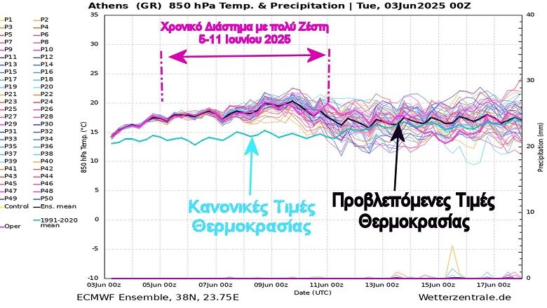 ✅Παρατεταμένη ζέστη στις περισσότερες περιοχές . Το πιο θερμό διάστημα από Πέμπτη έως Κυριακή, αλλά διατήρηση της ζέστης έως την Τετάρτη 11 Ιουνίου