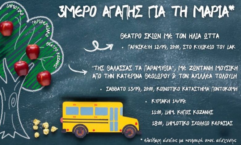 Με αγάπη για τη Μαρία: Ένα τριήμερο αλληλεγγύης με παραστάσεις και παραμύθια από το ΔΗ.ΠΕ.ΘΕ. Κοζάνης