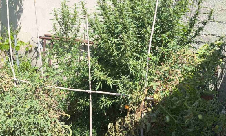 Η έρευνα στο σπίτι του αποκάλυψε, με τη βοήθεια του σκύλου ανίχνευσης «ROXY», τρία μεγάλα δενδρύλλια κάνναβης ύψους 2,20 μέτρων, τα οποία φρόντιζε στην αυλή του. Οι αστυνομικοί τα εκρίζωσαν και τα κατάσχεσαν.