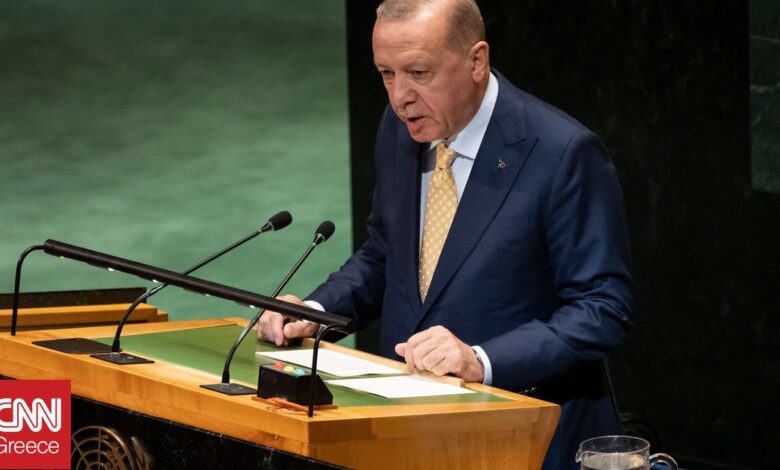 Ο Τούρκος πρόεδρος έκανε αυτό που συνηθίζει να κάνει όταν βρίσκεται εκτός των τειχών. Να «πουλά» τον εαυτό του ως «ειρηνοποιό», ως τον κρίσιμο παίκτη για τη Μέση Ανατολή, αλλά και ευρύτερα. Κάτι τέτοιο έκανε και από το βήμα της Γενικής Συνέλευσης του ΟΗΕ, όπου διατύπωσε για μία ακόμα φορά την ατζέντα του, με αρκετά ήπιους τόνους για τα ελληνοτουρκικά. Τα μάτια του είναι στραμμένα από τη μία στη Μέση Ανατολή, όπου εδώ και χρόνια εμφανίζεται ως ο προστάτης των μουσουλμάνων, αλλά και στην Ευρώπη, γιατί το ταμείο των αμυντικών δαπανών έχει ανοίξει και θέλει να είναι εκεί όταν θα μοιράζεται το χρήμα.
