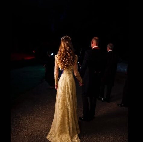 Ωστόσο, το επίκεντρο της εμφάνισής της ήταν η επιλογή των κοσμημάτων καθώς φόρεσε ένα ζευγάρι σκουλαρίκια που ανήκαν στην βασίλισσα Ελισάβετ και την εμβληματική τιάρα Lover’s Knot, ένα από τα αγαπημένα κομμάτια της πριγκίπισσας Νταϊάνα, σύμφωνα με τη Vogue.