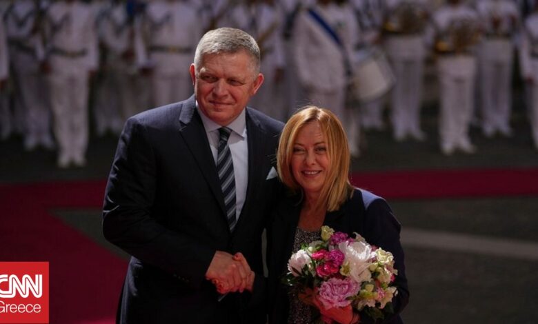 Η Ιταλίδα πρωθυπουργός Τζόρτζια Μελόνι συναντήθηκε το απόγευμα της Τρίτης (3/6) στην Ρώμη, με τον Σλοβάκο ομόλογό της Ρόμπερτ Φίτσο. Όπως αναφέρεται σε κοινό ανακοινωθέν, συζητήθηκε η ενίσχυση της διμερούς συνεργασίας, με ιδιαίτερη έμφαση στην άμυνα, στην ενέργεια και στην ασφάλεια.