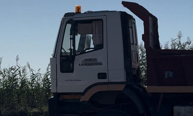 Φορτηγό του Δήμου Χαλκηδόνος ξεφορτώνει χώματα και υπολείμματα κλάδευσης σε παράνομη χωματερή.