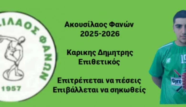 Στον Ακουσίλαο Φανών ο νεαρός ποδοσφαιριστής Δημήτρης Καρίκης