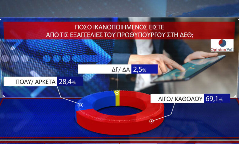 Το 69,1% των πολιτών δηλώνει λίγο ικανοποιημένο από τις εξαγγελίες του πρωθυπουργού στη ΔΕΘ και το 28,4% δηλώνει πολύ/αρκετά.