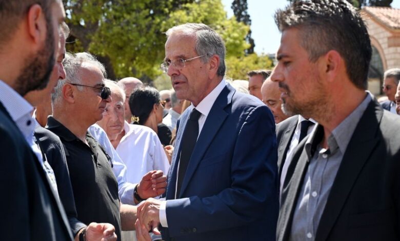 Ο πρώην πρωθυπουργός Αντώνης Σαμαράς, συνοδευόμενος από τη σύζυγό του Γεωργία και τον γιο τους Κωνσταντίνο, έφθασε συγκινημένος στην εκκλησία των Αγίων Θεοδώρων.