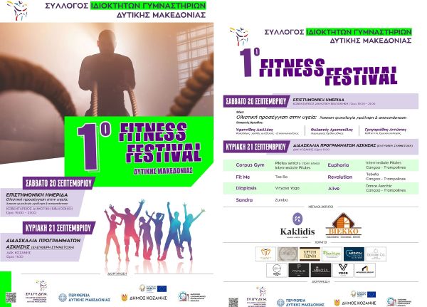 Το 1ο Fitness Festival διοργανώνει ο Σύλλογος Ιδιοκτητών Γυμναστηρίων Δυτικής Μακεδονίας σε συνεργασία με την Περιφέρεια Δυτικής Μακεδονίας, τον Δήμο Κοζάνης και το ΕΒΕ Κοζάνης.