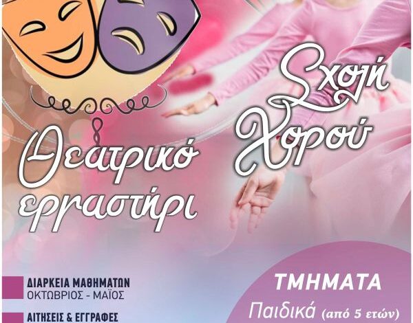 Έναρξη εγγραφών στη Σχολή Κλασικού Χορού και το Δημοτικό Παιδικό Θεατρικό Εργαστήρι (ΔΗ.ΠΑΙ.Θ.Ε.).
