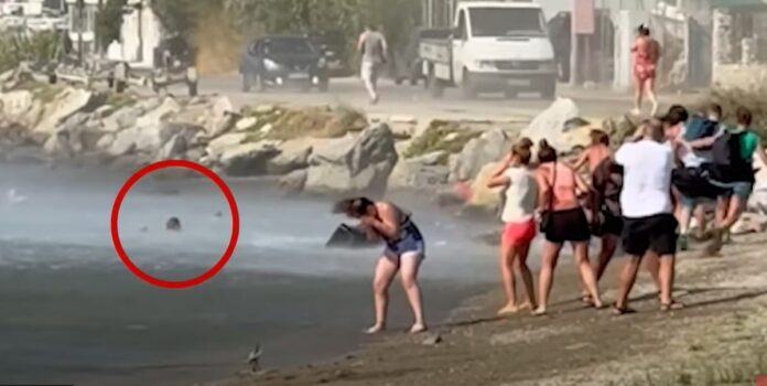 Αυτή τη φορά, στο ίδιο σημείο και πάλι, μία ομάδα ανθρώπων είδε τις αποσκευές τους να βγάζουν «φτερά» και να κάνουν «μακροβούτι» μέσα στη θάλασσα. Ο λόγος; Η πολύ κοντινή απόσταση από τις τουρμπίνες αεροσκάφους της Ryanair που ετοιμαζόταν να απογειωθεί από τον αεροδιάδρομο.