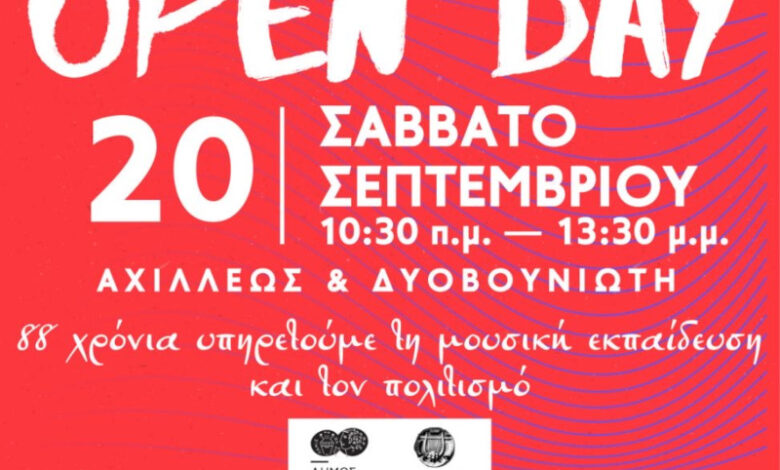 Το Δημοτικό Ωδείο Λαμίας σας προσκαλεί σε ένα ξεχωριστό Open Day που θα πραγματοποιηθεί το Σάββατο 20 Σεπτεμβρίου στις 10:30 π.μ., στους χώρους του Ωδείου (Αχιλλέως και Δυοβουνιώτη). Η εκδήλωση απευθύνεται σε μικρούς και μεγάλους που αγαπούν τη μουσική και θέλουν να γνωρίσουν από κοντά τον κόσμο της.