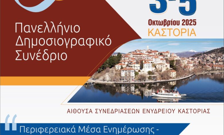 Η Ένωση Συντακτών Επαρχιακού Τύπου θα πραγματοποιήσει το 55ο Πανελλήνιο Δημοσιογραφικό Συνέδριό της με τίτλο «Περιφερειακά Μέσα Ενημέρωσης – Αξιοπιστία και Ελευθεροτυπία», 3 – 5 Οκτωβρίου 2025, στην αίθουσα συνεδριάσεων του Ενυδρείου Καστοριάς.