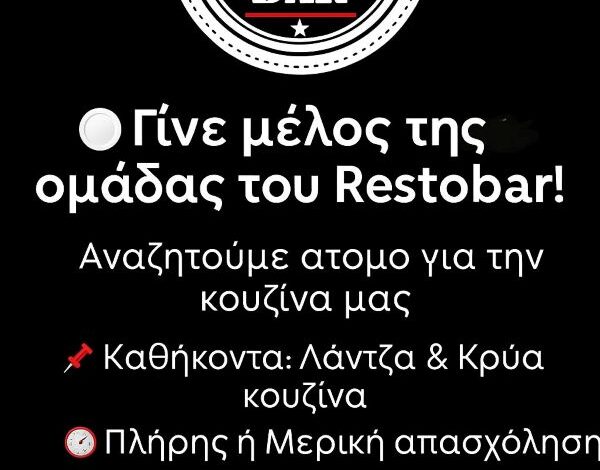 Το “The Resto Bar” αναζητά προσωπικό για λάντζα και κρύα κουζίνα – Πλήρης ή μερική απασχόληση