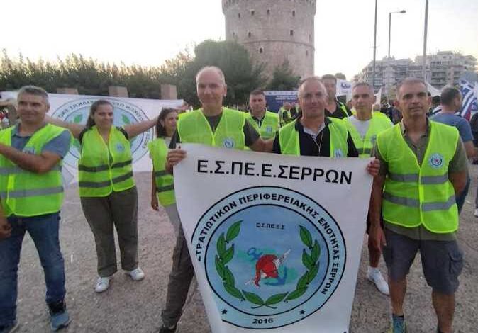 “Η Ένωση Στρατιωτικών Περιφερειακής Ενότητας Σερρών (Ε.Σ.ΠΕ.Ε.Σ.) συμμετείχε στις εκδηλώσεις διαμαρτυρίας των εργαζομένων των Ένοπλων Δυνάμεων και των Σωμάτων Ασφαλείας ενόψει της Διεθνούς Εκθέσεως Θεσσαλονίκης (ΔΕΘ).