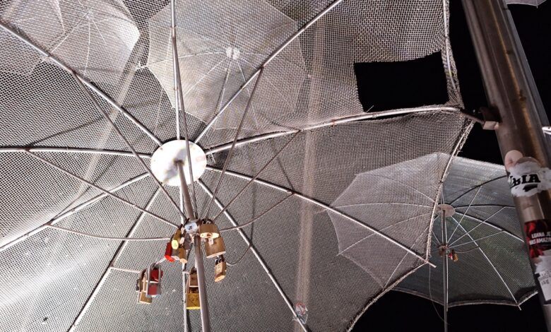 Εκτός από τις καιρικές συνθήκες που «πληγώνουν» το έργο τέχνης, υπάρχουν και οι ασυνείδητοι οι οποίοι τοποθέτησαν στις ομπρέλες που βρίσκονται χαμηλά, λουκέτα.