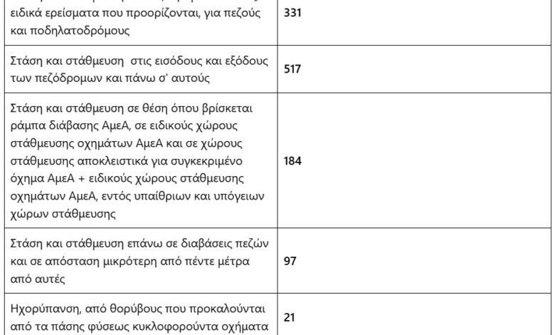 Πιο συγκεκριμένα από τις Υπηρεσίες Τροχαίας, τα Αστυνομικά Τμήματα και τα Τμήματα Άμεσης Δράσης των Διευθύνσεων Αστυνομίας Αχαΐας, Ηλείας, Αιτωλίας και Ακαρνανίας βεβαιώθηκαν συνολικά 1.157 παραβάσεις του Κώδικα Οδικής Κυκλοφορίας σχετικά με την ελευθερία κίνησης των πολιτών.