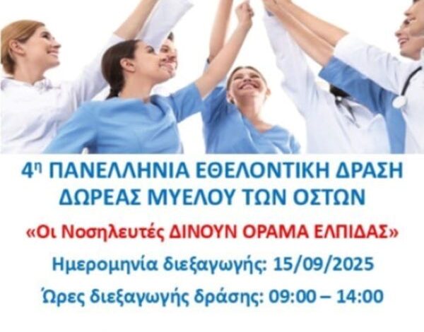 Στο πλαίσιο της Παγκόσμιας Ημέρας Εθελοντή Δότη Μυελού των Οστών 2025, η Διοίκηση και η Διεύθυνση της Νοσηλευτικής Υπηρεσίας του Γ.Ν. Κοζάνης «ΜΑΜΑΤΣΕΙΟ» σε συνεργασία με την Ένωση Νοσηλευτών Ελλάδος και το σύλλογο «ΟΡΑΜΑ ΕΛΠΙΔΑΣ», προσκαλεί τους Νοσηλευτές, τους επαγγελματίες υγείας και τους πολίτες που επιθυμούν και πληρούν τα κριτήρια, να συμμετάσχουν στην 4η Πανελλαδική Εθελοντική Δράση Δωρεάς Μυελού Οστών: