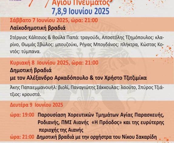 7-9 Ιουνίου το παραδοσιακό 3ήμερο πανηγύρι της Αιανής – Δείτε το πρόγραμμα