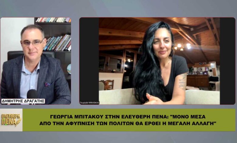 Η Γεωργία Μπιτάκου μιλά στην Ελεύθερη Πένα για ζητήματα που απασχολούν την ελληνική κοινωνία και αναλύει το φαινόμενο της σταδιακής αφύπνισης των πολιτών. Σε μια περίοδο έντονων εξελίξεων και προβληματισμών, επισημαίνει ότι η ενημέρωση, η συμμετοχή και η συνειδητοποίηση της πραγματικότητας μπορούν να αποτελέσουν τη βάση για βαθύτερες αλλαγές στην κοινωνία.
