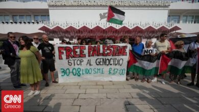 Διαδηλωτές ξεδίπλωσαν πανό για τη Γάζα πριν την έναρξη του κινηματογραφικού φεστιβάλ της Βενετίας