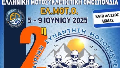 Η Ελληνική Μοτοσυκλετιστική Ομοσπονδία (ΕΛ.ΜΟΤ.Ο.) συνδιοργανώνει με την Περιφέρεια Δυτικής Ελλάδας και τον Δήμο Δυτικής Αχαϊας, τη 2η Πανελλήνια Καλοκαιρινή…
