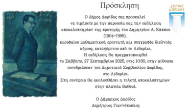 Ο Δήμος Δωρίδος τιμά τη μνήμη και την προσφορά του κορυφαίου μαθηματικού, ερευνητή και συγγραφέα διεθνούς κύρους, Δημητρίου Α. Κάππου,…