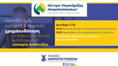 Κέντρο Υποστήριξης Μικροπιστώσεων δημιουργεί το Επιμελητήριο Ηρακλείου