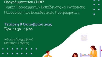 Ο Τομέας Προγραμμάτων Εκπαίδευσης και Κατάρτισης του CluBE σας προσκαλεί στην παρουσίαση των εκπαιδευτικών προγραμμάτων για τη σχολική χρονιά 2025-2026,…