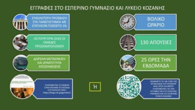 Εγγραφές και επαναεγγραφές στο Εσπερινό Γυμνάσιο – Λύκειο Κοζάνης για την περίοδο Σεπτεμβρίου 2025 -2026