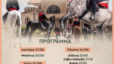 Δήμος Βοΐου: Πολιτιστικό καλοκαίρι – Δευτέρα 11 Αυγούστου – Παρέλαση Αλόγων από την Ιππική Παρέα «ΤΑ ΜΠΟΥΝΙΑ» στη Σιάτιστα Ώρα…