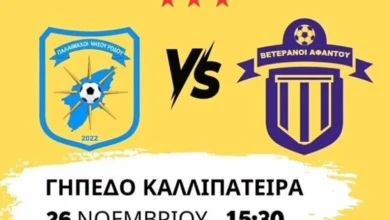 Την Τετάρτη (26/11 15:30) στο Ε.Α.Κ. θα διεξαχθεί φιλικό παιχνίδι ανάμεσα στους παλαίμαχους της Νήσου Ρόδου και τους Βετεράνους Αφάντου,…