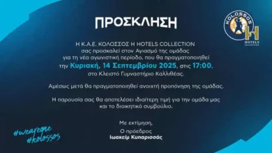 Ο Κολοσσός H Hotels Collection ανακοινώνει ότι την Κυριακή 14 Σεπτεμβρίου 2025 και ώρα 17:00 θα πραγματοποιηθεί ο αγιασμός της…